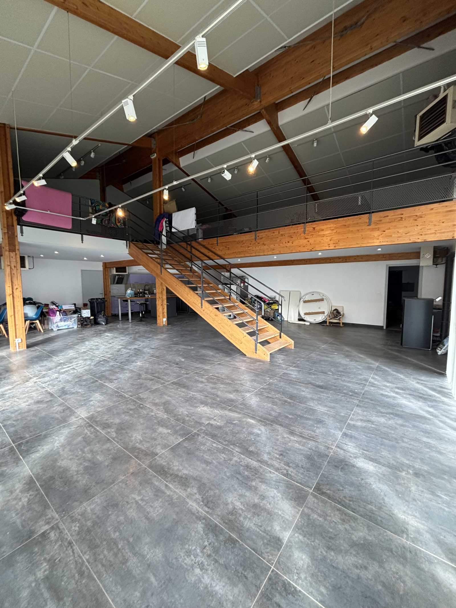 Attenant au local, un logement de type T5, offrant de très beaux volumes, peut également faire office de showroom selon vos besoins.