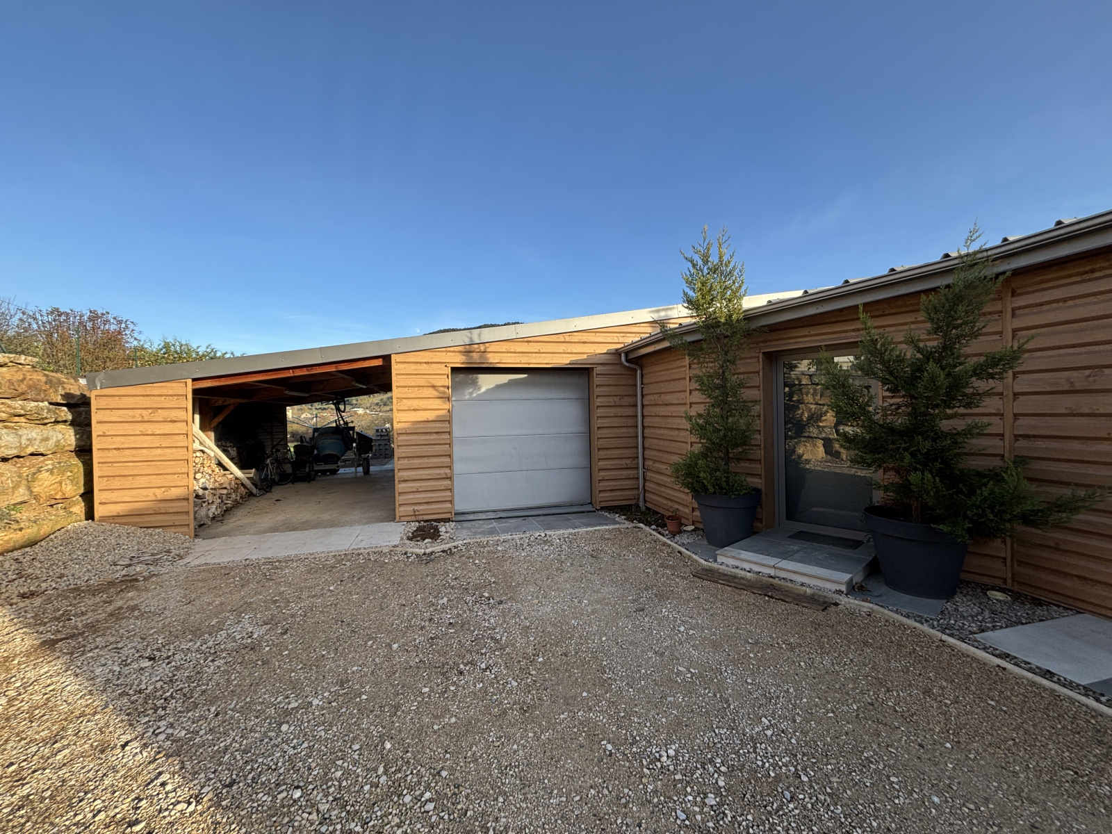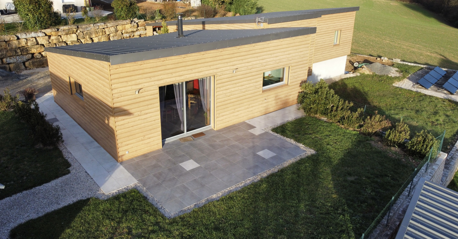 La propriété bénéficie également de panneaux photovoltaïques et d’un aménagement extérieur complet.