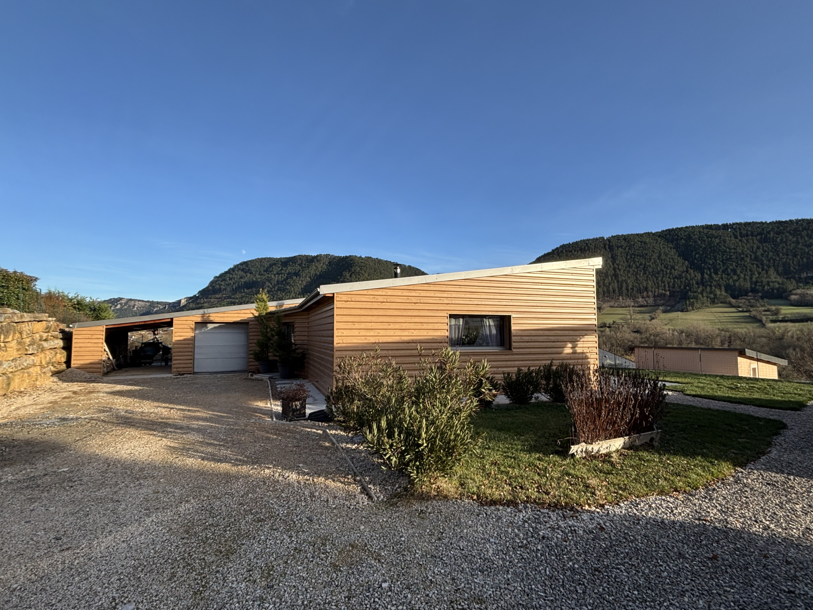 Offrant une superbe luminosité grâce à ses larges ouvertures, cette maison à ossature bois répond pleinement aux standards énergétiques actuels.Elle se compose de quatre chambres, dont une suite parentale, ainsi que d’une spacieuse pièce de vie avec cuisine ouverte et cheminée .Un garage, un carport et un très grand vide sanitaire accessible en hauteur d’homme complètent l’ensemble.
