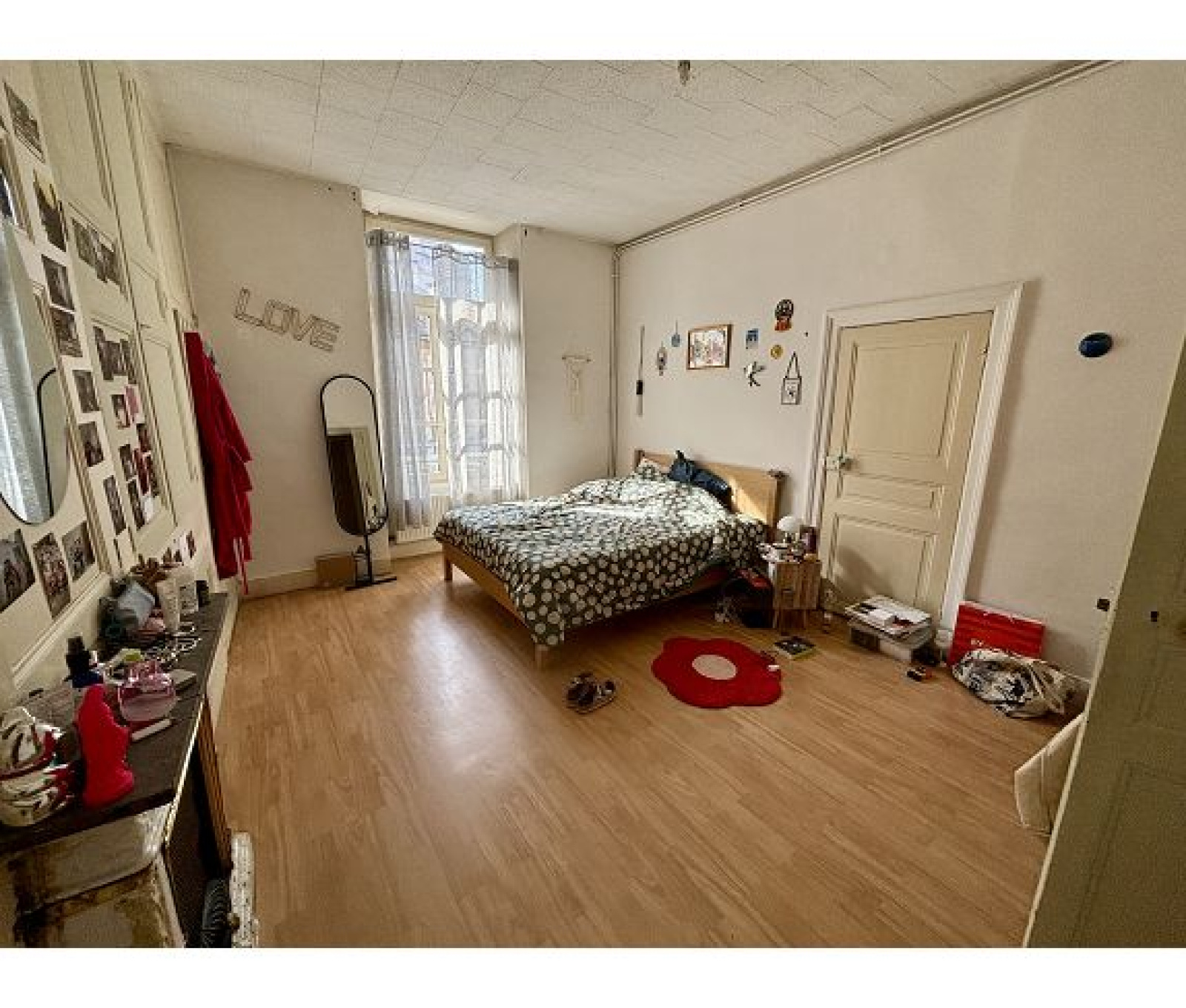 Appartement de type 4 de 124m2 au premier étage d?une résidence de 10 lots à proximité directe du centre-ville. Cet appartement avec balcon filant est composé d?une entrée, de trois chambres avec rangements, d?un séjour avec accès balcon, d?une cuisine dînatoire, d?une salle de bain, d?un placard et d?un wc. Vous saurez apprécié son luminosité et ses grands volumes permettant de profiter des différents espaces le composant. Ce bien nécessite des travaux de rafraîchissement, il est raccordé au réseau de chaleur, les murs sont isolés par l?intérieur et comprend un double vitrage bois intégral. L?appartement est actuellement loué.