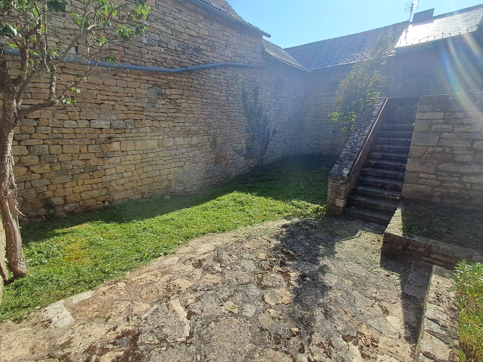 La maison dispose d'une cour privée orientée au sud et d'un balcon offrant une vue dégagée sur la vallée.