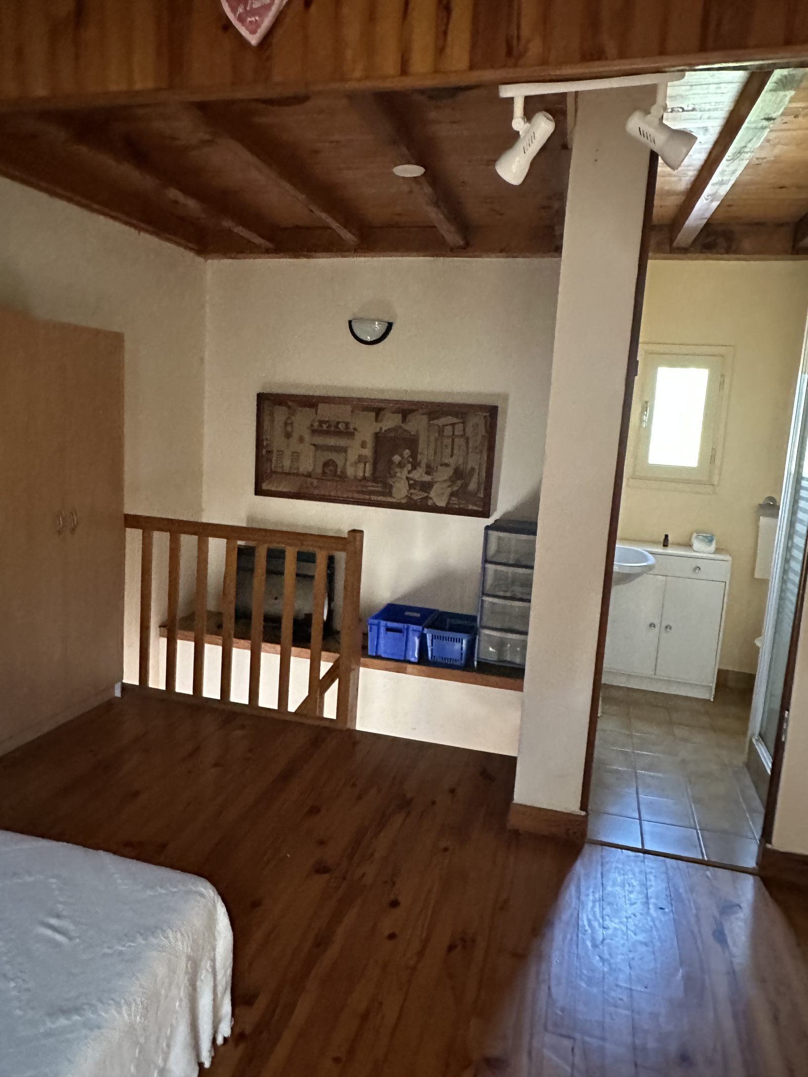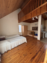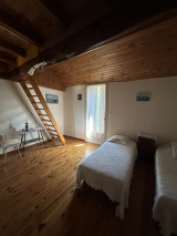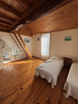 À l’étage, vous découvrirez une spacieuse chambre mansardée, agrémentée d’une mezzanine offrant un espace supplémentaire.